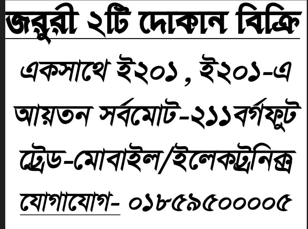 ই/২০১ ও ই/২০১-এ নং দোকান বিক্রয়ের বিজ্ঞাপন।